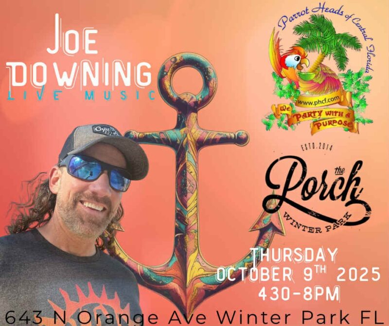 Join us at our October PHlocking at The Porch-Winter Park. We welcome Trop Rock Artist Joe Downing. 4PM to 8PM
